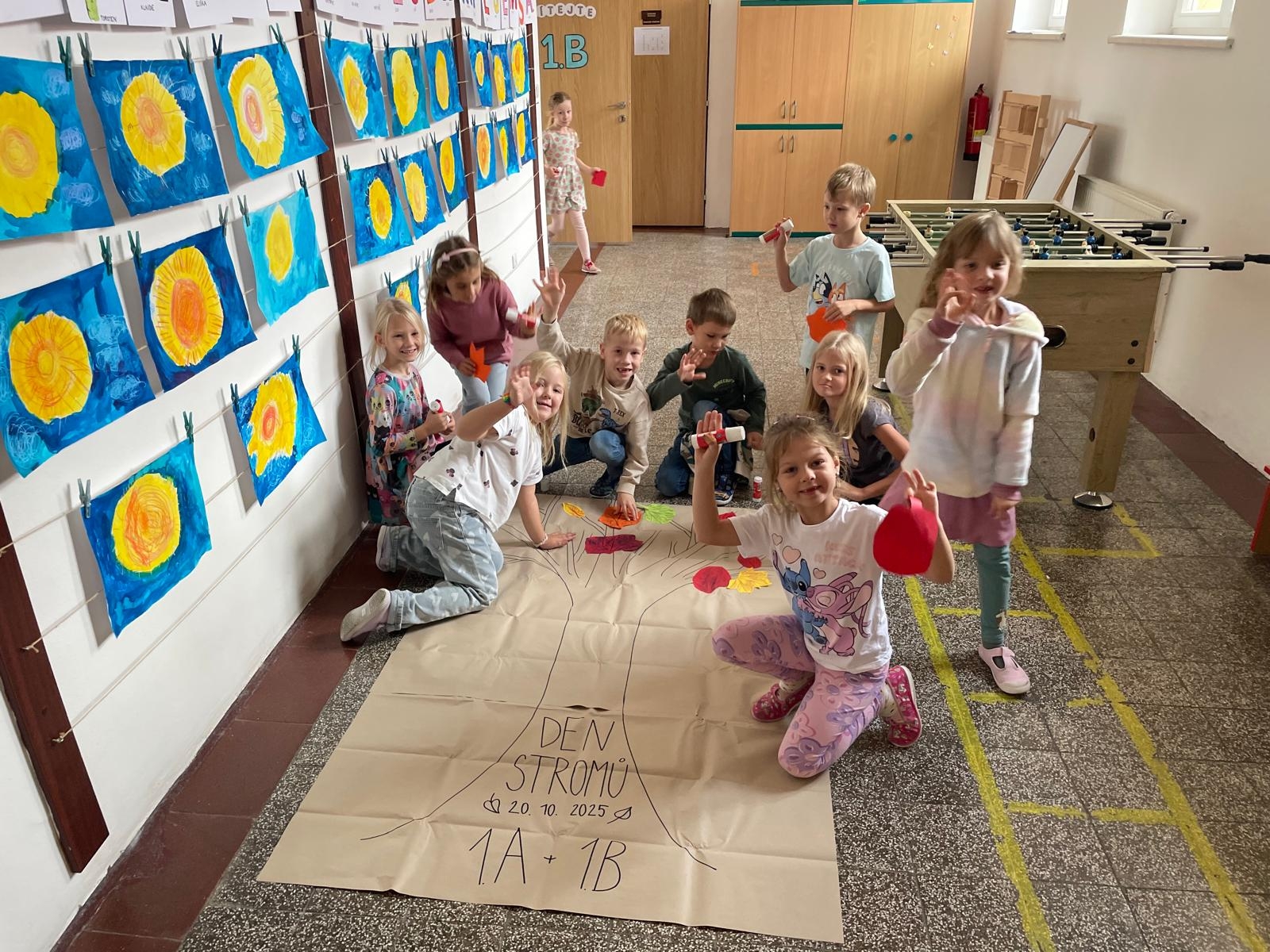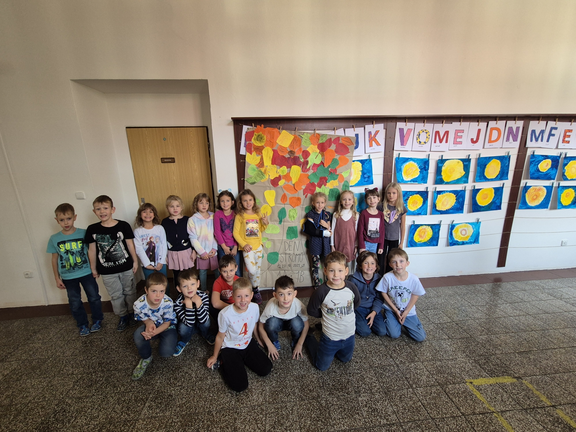 Den stromů v prvních třídáchNaši prvňáčci vědí, že jsou pro nás stromy velmi důležité. 21. října se proto děti z 1.A i z 1.B sešly a společně si zazpívaly píseň o stromech a také vytvořily podzimní strom. Práce se dětem velmi povedla a všichni si ji užili.